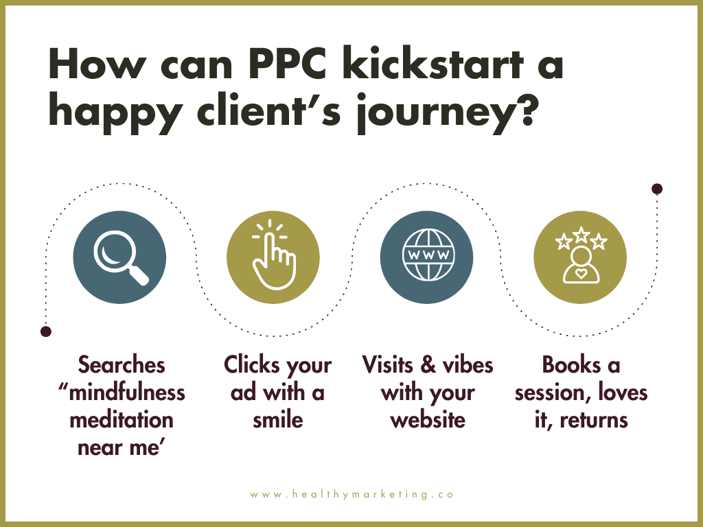 The best way to think about it holistically is that PPC can be a part of a strategy that ultimately helps you make genuine connections. It can complement your organic efforts, ensuring your message reaches the right people at just the right moment. If you’d like a primer on SEO before getting evaluating the paid side, feel free to check out our blog, “Unlock the secret to top Google rankings for your holistic site!”
